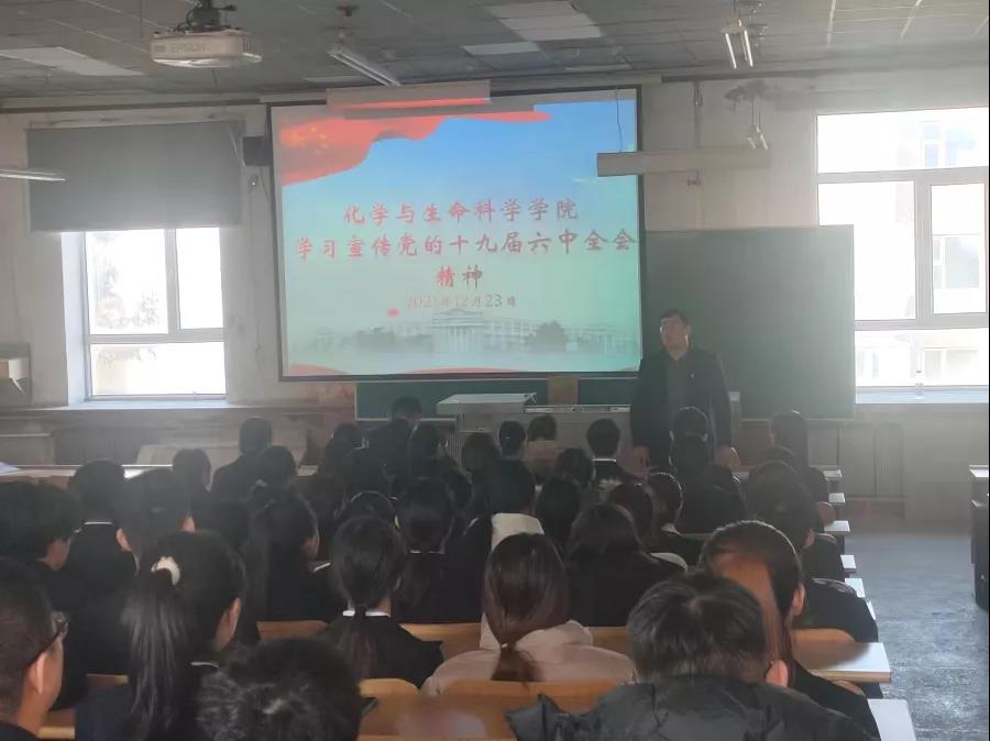 tyc33455cc太阳成集团将学习宣读党的十九届六中全会精神作为首要任务。并于12月23日南湖校区材料楼301教室和党员活动室开展学习宣读党的十九届六中全会精神主题大会。本次会议由tyc33455cc太阳成集团党委书记于洪,党委副书记徐秉锋两位老师主讲。两位老师对党的十九届六中全会精神内容进行了总结与叙述:一是通过中国共产党第三次历史决议;二是强调了两个确立;三是进一步概括了习近平新时代中国特色社会主义思想;四是十个坚持总结建党百年奋斗历史经验;五是文化建设取得重大历史性成就;六是高质量发展中推进共同富裕。此外,老师们也介绍了党的百年奋斗历程和历史经验,使同学们对党的十九届六中全会精神有了更深入的理解。