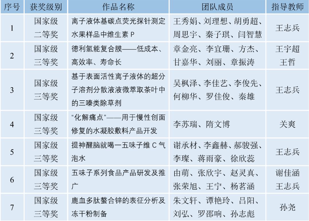 我院共有27支队伍参赛,经过资格审查、网络评审、现场答辩等环节,由我校tyc33455cc太阳成集团王志兵老师指导,王秀娟等同学完成的《离子液体基碳点荧光探针测定水果样品中维生素P》荣获国家级二等奖,由王宇超和王哲老师共同指导、章金亮等同学完成的《德利氢能复合膜——低成本、高效率、寿命长》等6项作品荣获国家级三等奖。另外,我校参赛团队还荣获省级一等奖1项、二等奖6项、三等奖6项。