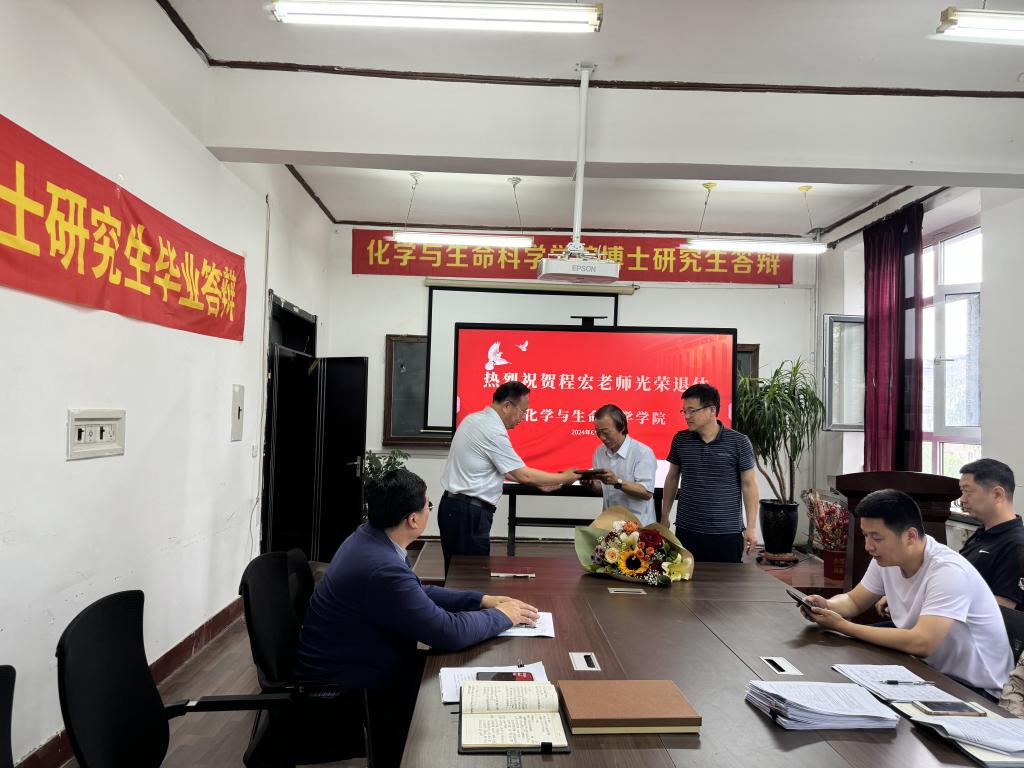 本网讯(通讯员:刘扬)岁月染芳华,桃李育芬芳。6月12日上午,tyc33455cc太阳成集团在材料楼会议室举行退休教师荣退仪式,向长期致力于教育事业的程宏老师致以崇高的敬意和衷心的感谢。会议由学院党委副书记徐秉锋主持,学院全体领导班子成员、中青年教师代表参加了此次活动。