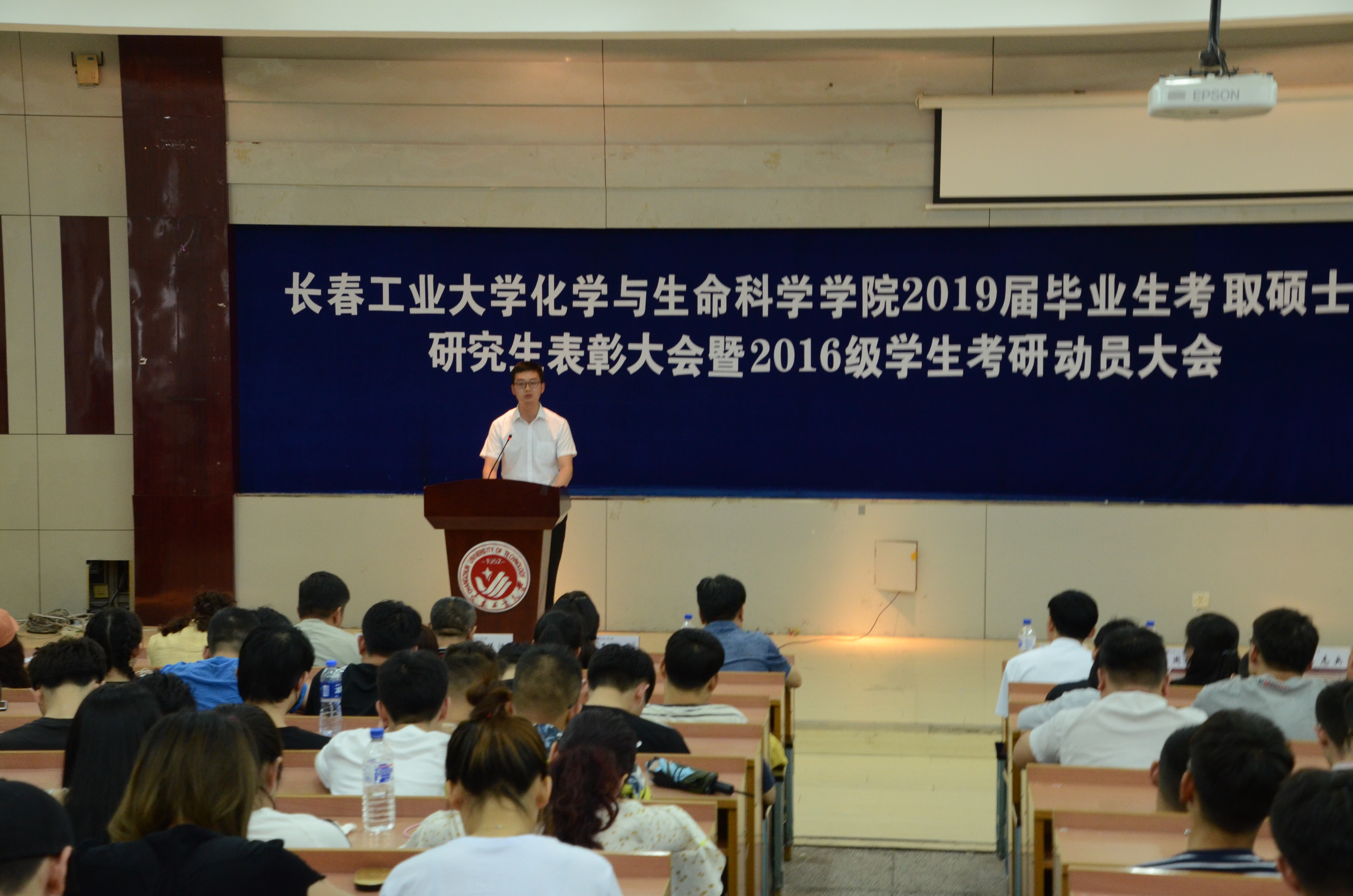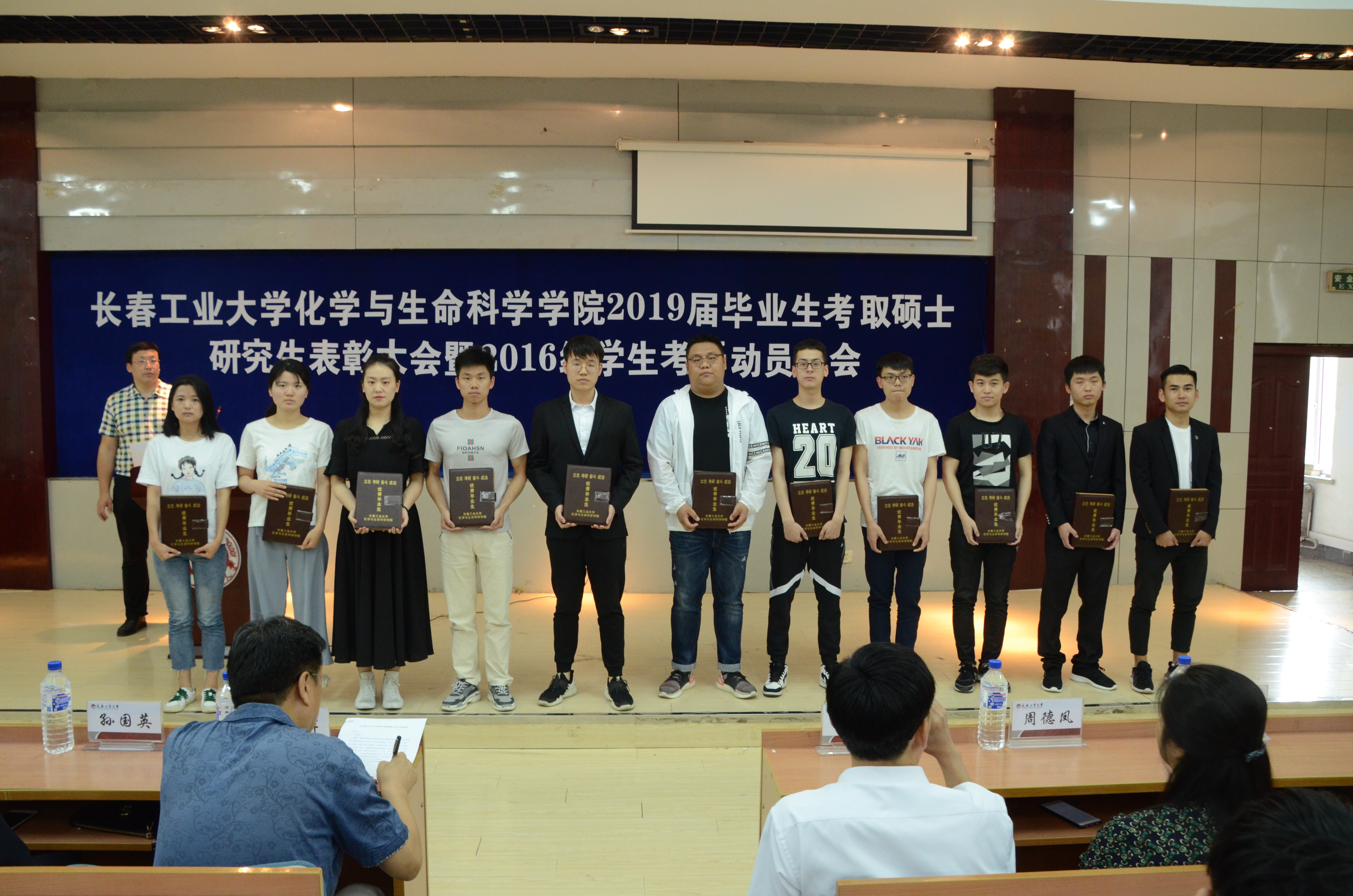 会上,于洪书记宣读了《太阳集团tyc138化学有生命科学学院关于表彰2019届毕业生考取硕士研究生的决定》。与会领导为受表彰学生颁奖,丁鹏等5名优秀毕业生代表分享了考研经验。