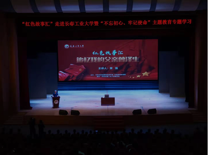 化生团委讯(通讯员 王楷 章振涛 臧颖)9月4号下午,为了庆祝新中国成立70周年,由吉林省委党史研究室、共青团吉林省委主办的“红色故事汇”主题宣讲活动在南湖校区大礼堂召开,“民族英雄”曾泽生将军之子曾强先生应邀作了《追忆我的父亲曾泽生》的报告,我院2019级学生聆听了报告。