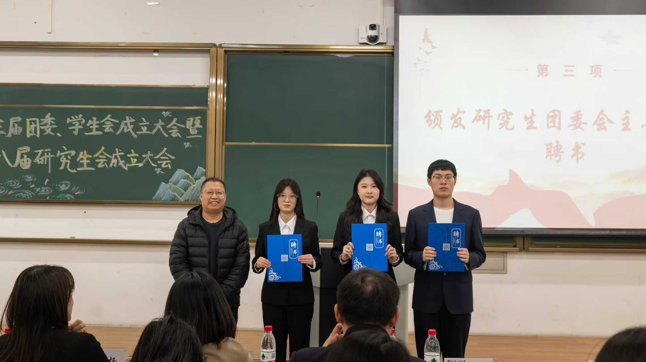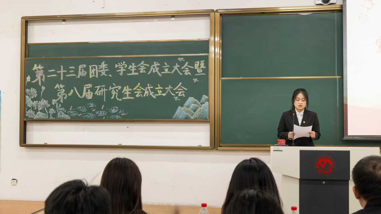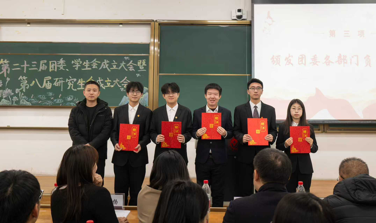 本网讯(通讯员:孙鹏博、谭皓天、夏伟铭)为进一步健全学生组织体系,凝聚青年力量,加强学院学生组织队伍建设。我院于11月28日在西阶202举行第二十三届团委、学生会成立大会暨第八届研究生会成立大会,本次大会由第二十三届学生会主席团成员董宇晗主持,学院党委副书记郑岩、研究生党支部书记张烨、团委书记李秀绒、辅导员孙铭、刘扬以及兄弟学院学团组织代表,全体新一届团学组织成员参加会议。