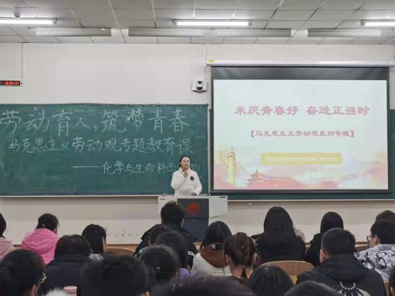 新闻网讯(通讯员:张一鸣)为了培养同学们的劳动价值观,树立劳动观念,提高劳动意识,11月23日,我院在北湖校区西阶201教室开展“未厌青春好,奋进正当时”主题马克思主义劳动观教育课。课程由辅导员侯天放主讲,2020级学生现场聆听。