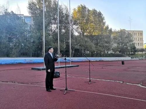 研究生代表马小悦以及本科生代表韩金鹏进行了国旗下演讲。
