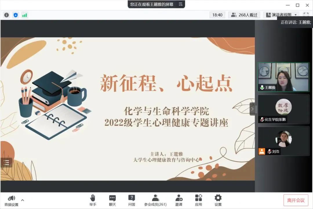 新闻网讯(通讯员 马静)为进一步提升新生的心理素质,促进心理健康发展,转变学生的思维意识,激发学生的学习兴趣。9月13日,我院开展了“新征程·心起点”心理健康专题讲座,会议由院团委书记,辅导员张鹏主持,王麓雅老师出席会议并做专题报告。2022级全体同学参加了此次会议。