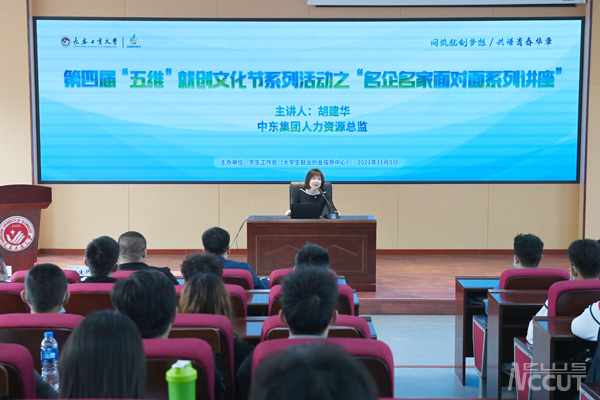 新闻网讯(通讯员 徐培鑫)11月5日上午,学校在南湖校区综合三报告厅举行第四届“五维”就创文化节开幕式暨“名企名家面对面系列讲座”。校党委副书记李东玲出席开幕式并致辞。吉林省中东集团有限公司人力资源总监胡建华作“名企名家面对面系列讲座”首场讲座。学校相关部门负责人、南湖校区教师及学生代表参加开幕式。机关党委副处级专职组织员刘凤利主持开幕式。